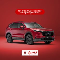 CR-V Full Hybrid: Het Salonvoordeel tot € 6.650 bestaat uit€ 4.500 incl. BTW prijsvoordeel en 50% voordeel op twee fabrieksopties.