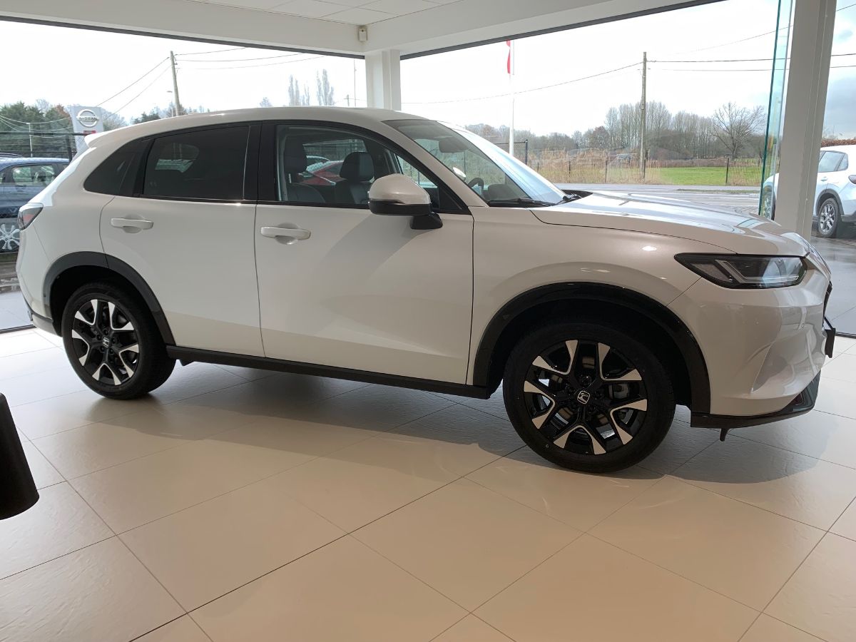 Honda ZR-V 2.0 Advance Hybride, NIEUW, Platinium White Pearl, zwart leder interieur, panoramisch glazen schuifdak, voorstoelen met geheugenfunctie, head-up display, Bose audiosysteem met 12 speakers,verwarmde voor- en achterzetels, verwarmd stuurwiel, 18" lichtmetalen velgen, draadloze GSM-lader, sportpedalen, 2x USB-poorten voor en achter, elektrische hoogteregeling bestuurdersstoel, elektrische achterklep met voetsensor en "Walk-away Close" privacy glass, Honda Sensing, achteruitrijcamera, Drive modes, Apple Carplay en android auto, raamsierlijsten in hoogglans zwart....